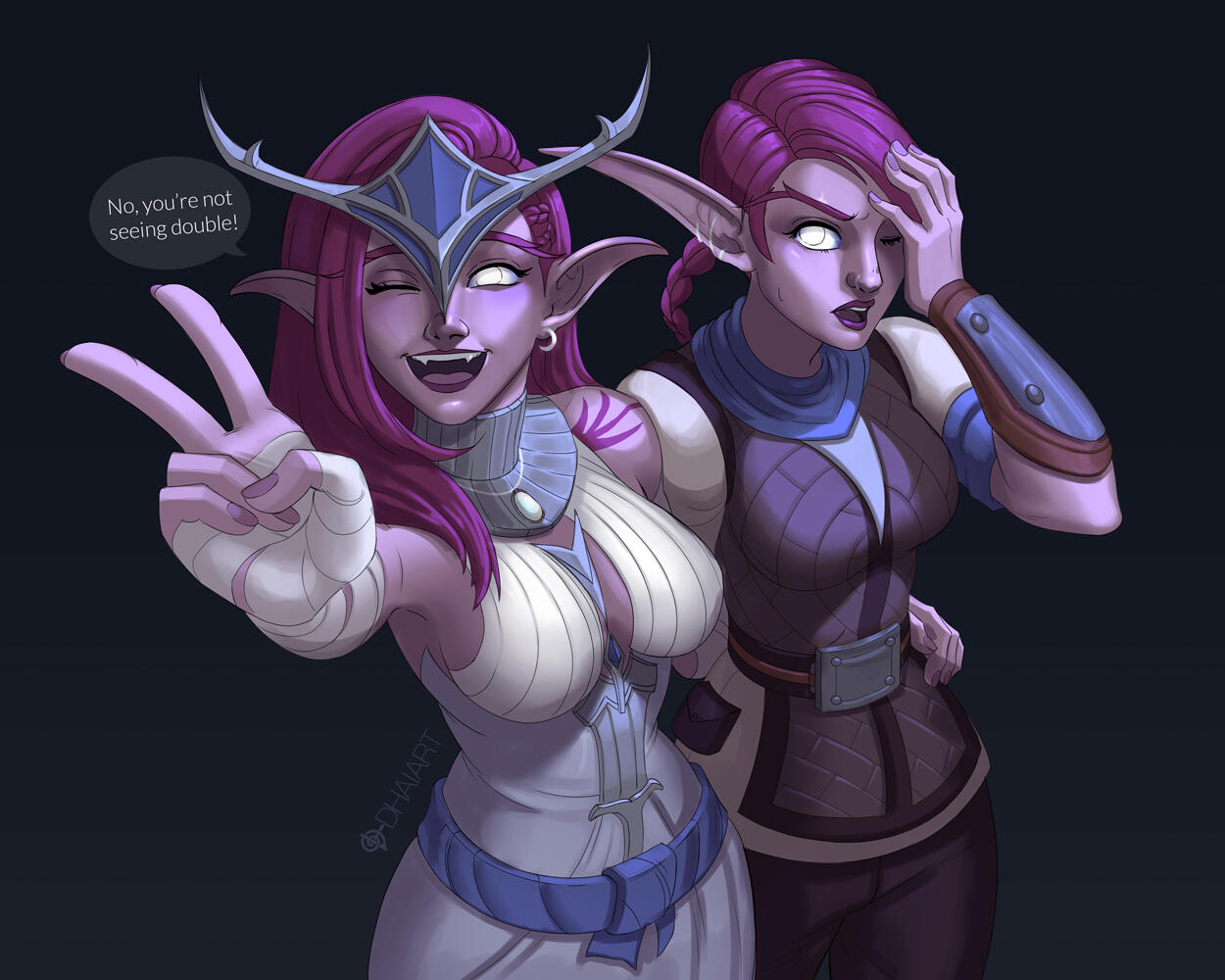 Hello, everyone! I'm Dhai, 31 years old, she/her, Brazilian!I've always loved drawing, ever since I could grab a pen. I've always had lots of creative incentive from my family, so art has been an important part of my life since I was a kid.My professional career as an artist started in a funny way, to be honest! I started playing World of Warcraft in 2006, and I joined Moon Guard for roleplay in 2016. That was the year my character arts got more visibility, and suddenly I found myself working as a commission artist! I still roleplay on Moon Guard (A), where I have fun with my OCs. ❤️I love working on people's characters and, despite my portfolio being full of Warcraft characters, I take requests of characters from all universes - Dungeons & Dragons, Final Fantasy, Star Wars, Elder Scrolls... You name it! I love them all. I also enjoy drawing real life people!Feel free to contact me about commissions, roleplay, or even a friendly chat! You can do it through any of the links below, though Discord is where I'm active the most. :>Thanks for visiting and reading this!